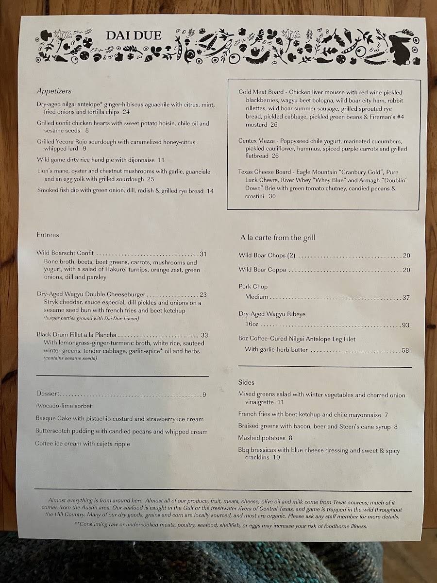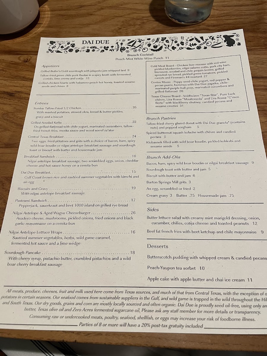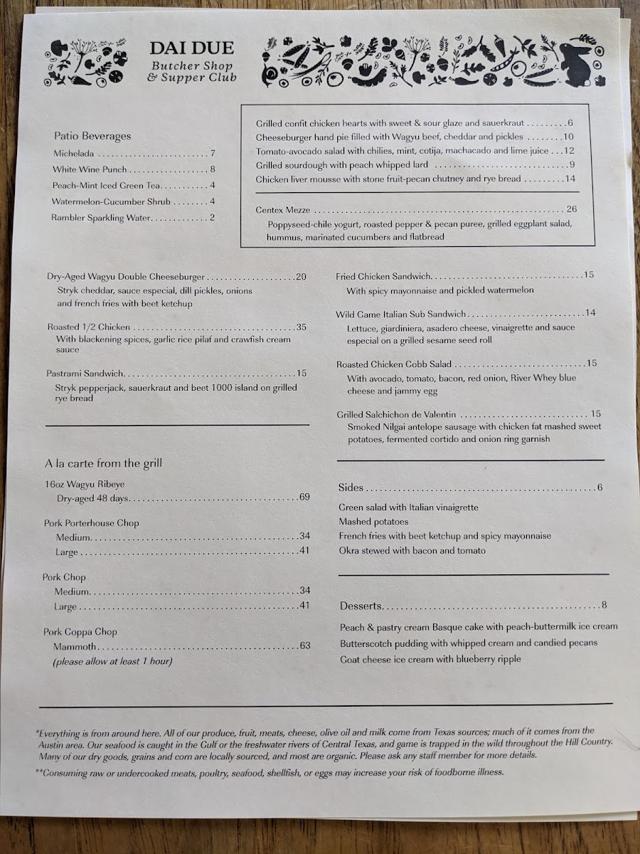 Welcome to Dai Due, a gem nestled in Austin, Texas, renowned for its farm-to-table ethos and vibrant culinary offerings. Here, each dish sings with freshness, skillfully highlighting local ingredients. The menu boasts distinctive entrees like Wild Boar Confit immersed in a chile bone broth and finished with sweet potato puree and herbs, and the indulgent Dry-Aged Wagyu Double Cheeseburger served with beef fat fries.
